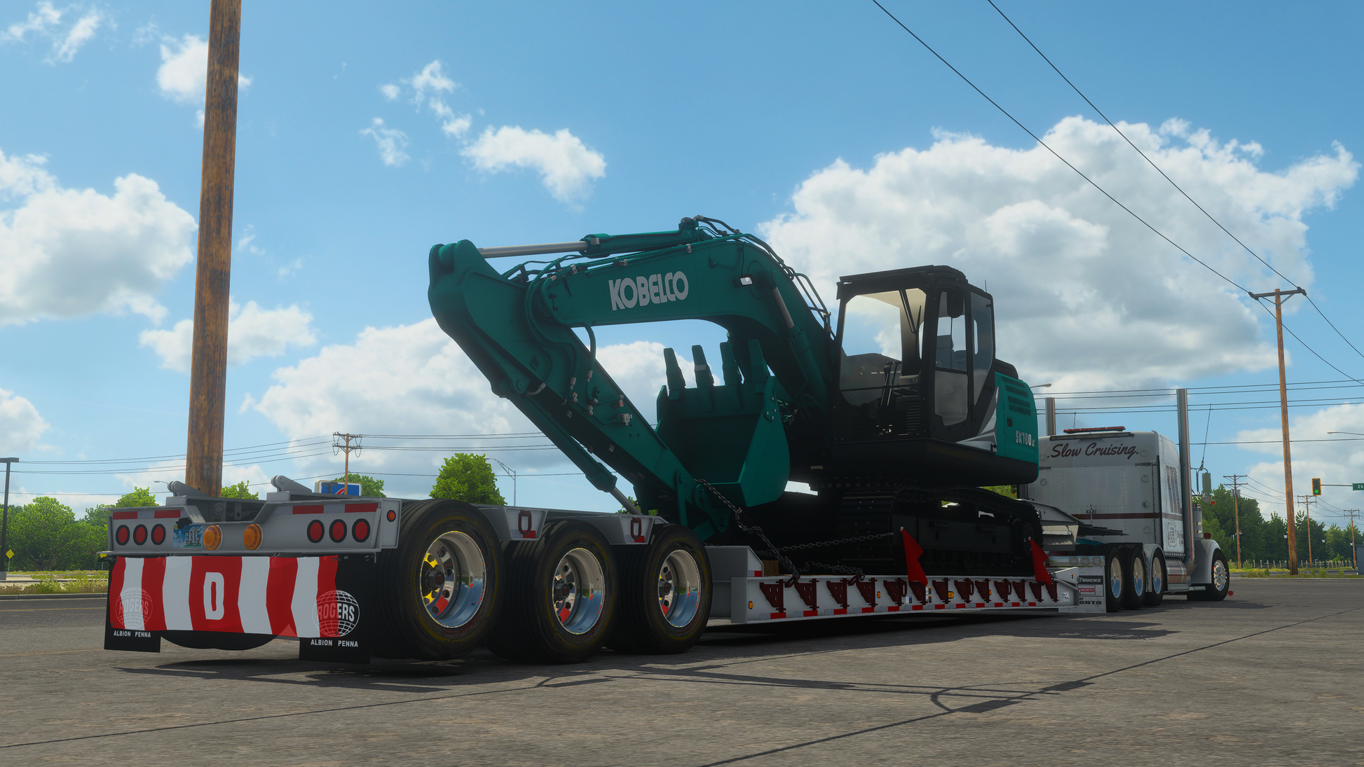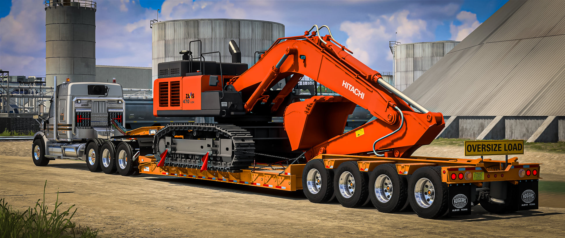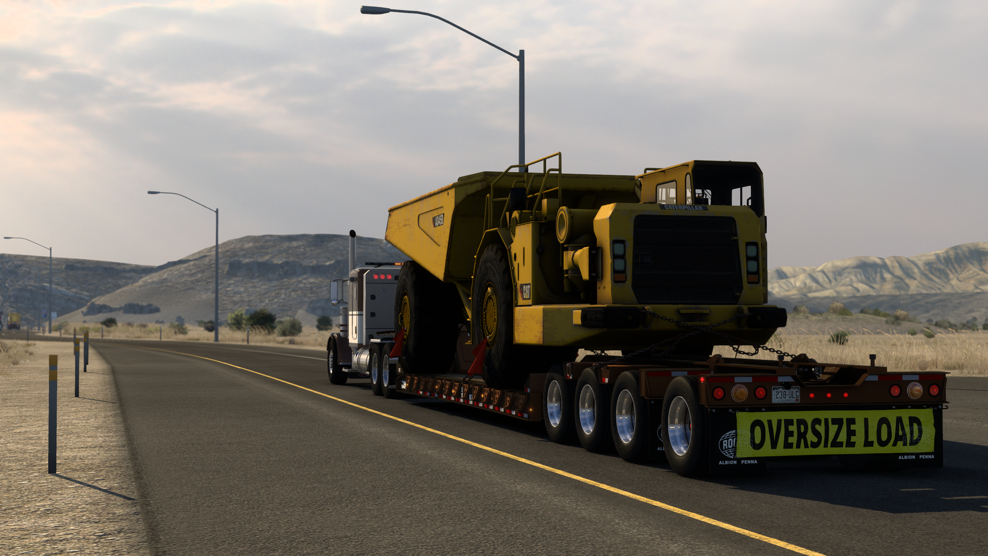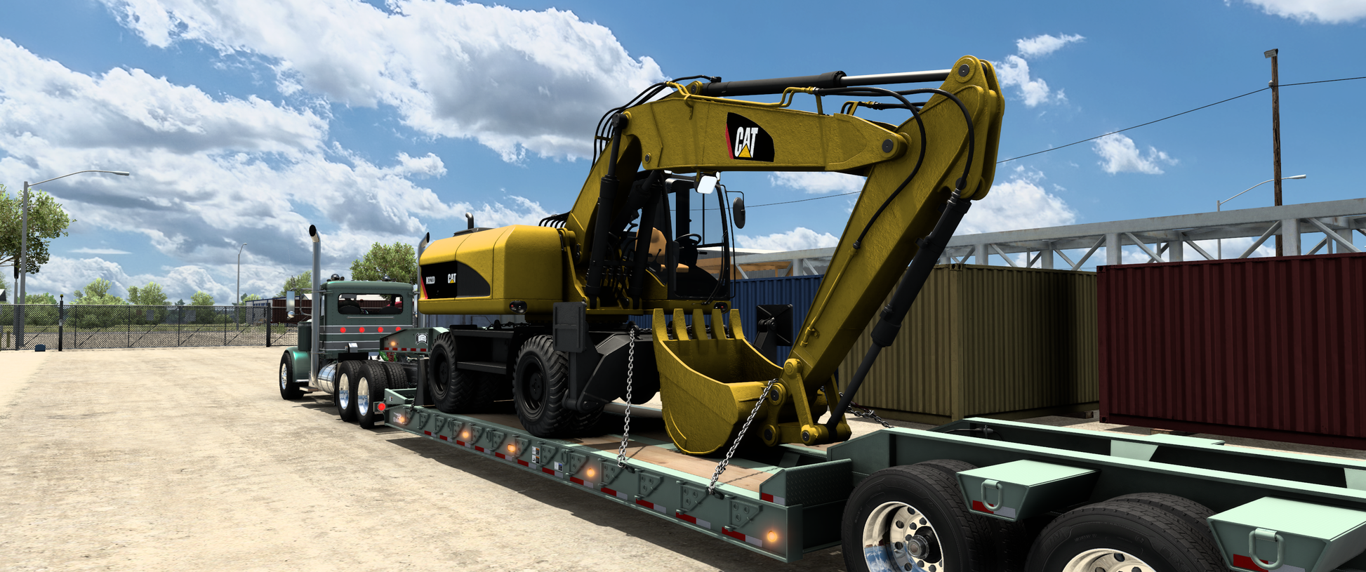 The model was created by Habdorn and ingamed by Pizzster Modding. This is a very high quality ats lowboy trailer model with high quality cargos.