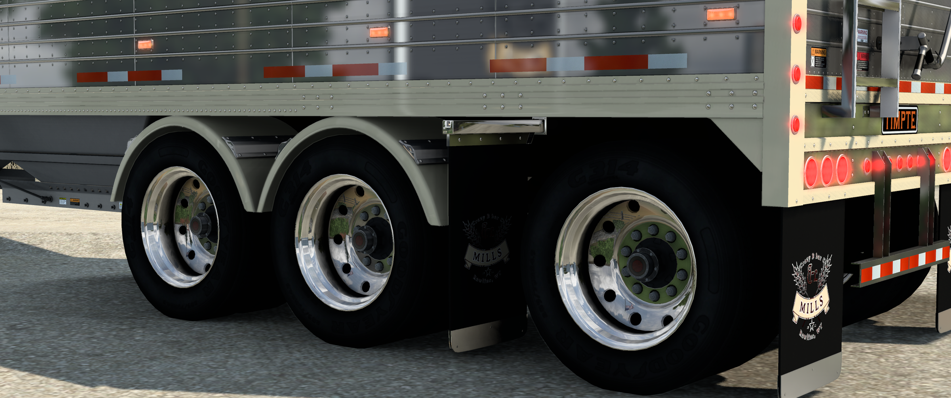 • Plenty of mudflap options.  From weighted to customizable or branded flaps.  Can be added to the rear of the trailer as well as in front of the landing gear and in between the spread axle as well as the new 3 axle lift/steerable option.